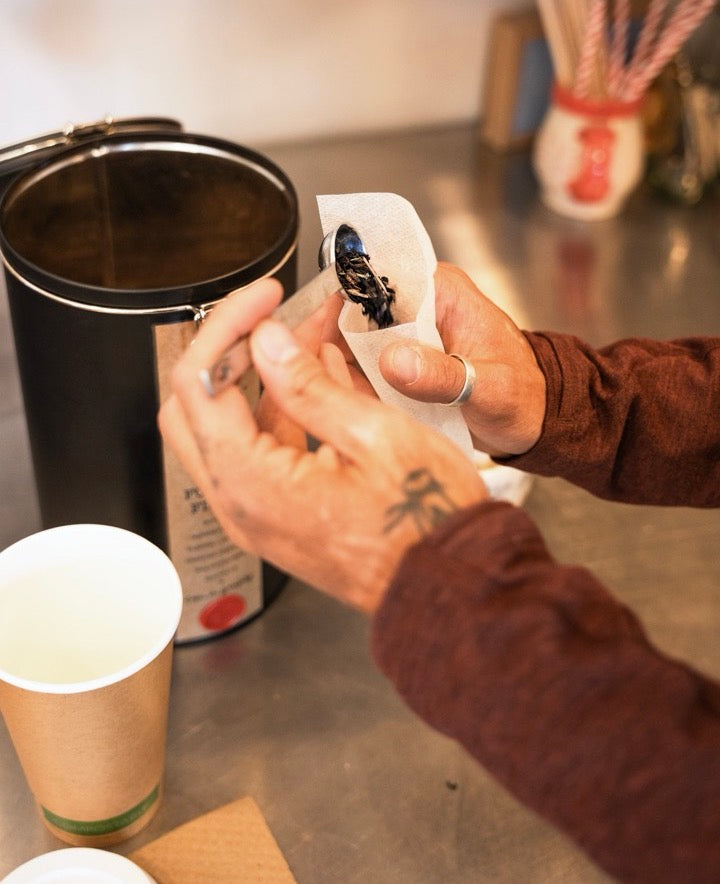 PRO TIP: Have dedicated TEA french presses. Do not combine with coffee french presses as it may flavor the tea like coffee. We offer complimentary laminated serving guides + 1 standard teaspoon for you and your team so you are never over or under serving your tea!