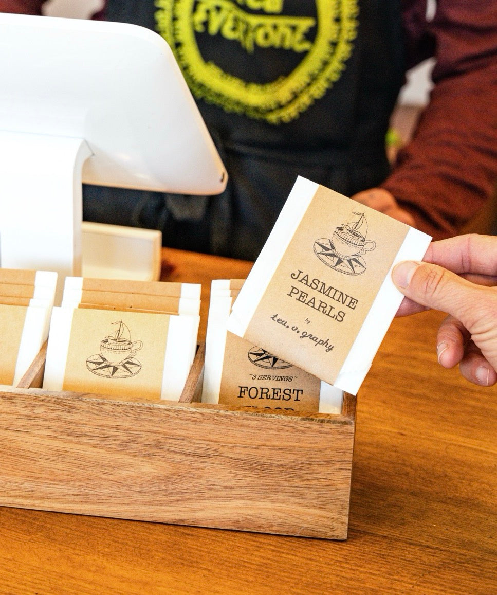 Our packaged teabags are great by a register for “impulse purchases” - an easy and lower price point for folks to try the tea blends you carry… fall in love and come back for the 1 or 2 oz bags.
